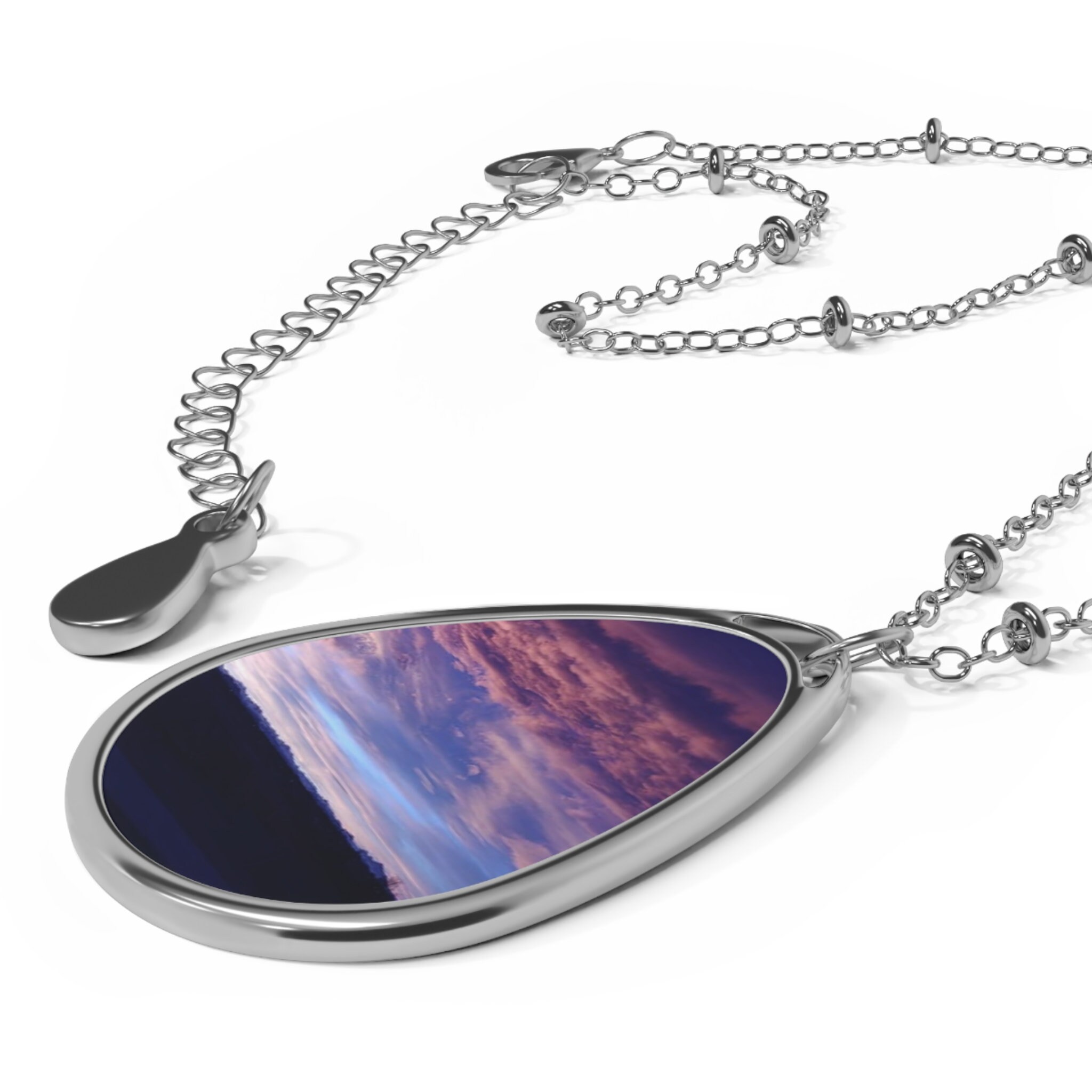 .: Zinc alloy pendant and necklace chain .: Ellipse-shaped pendant .: White aluminum print surface